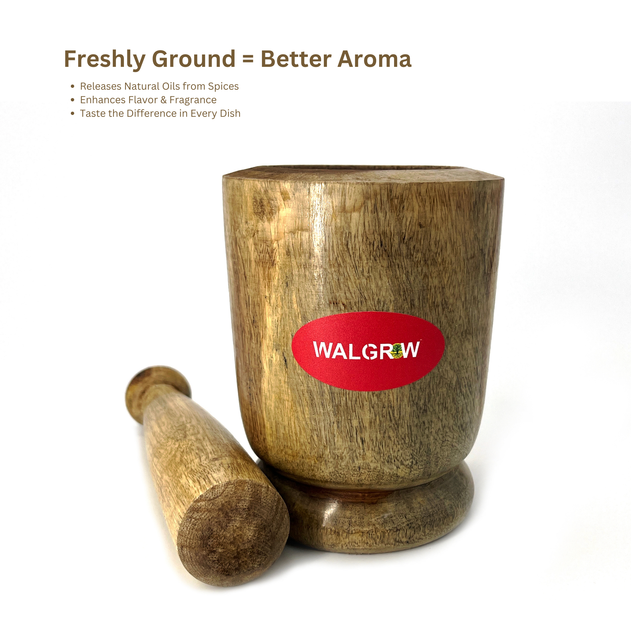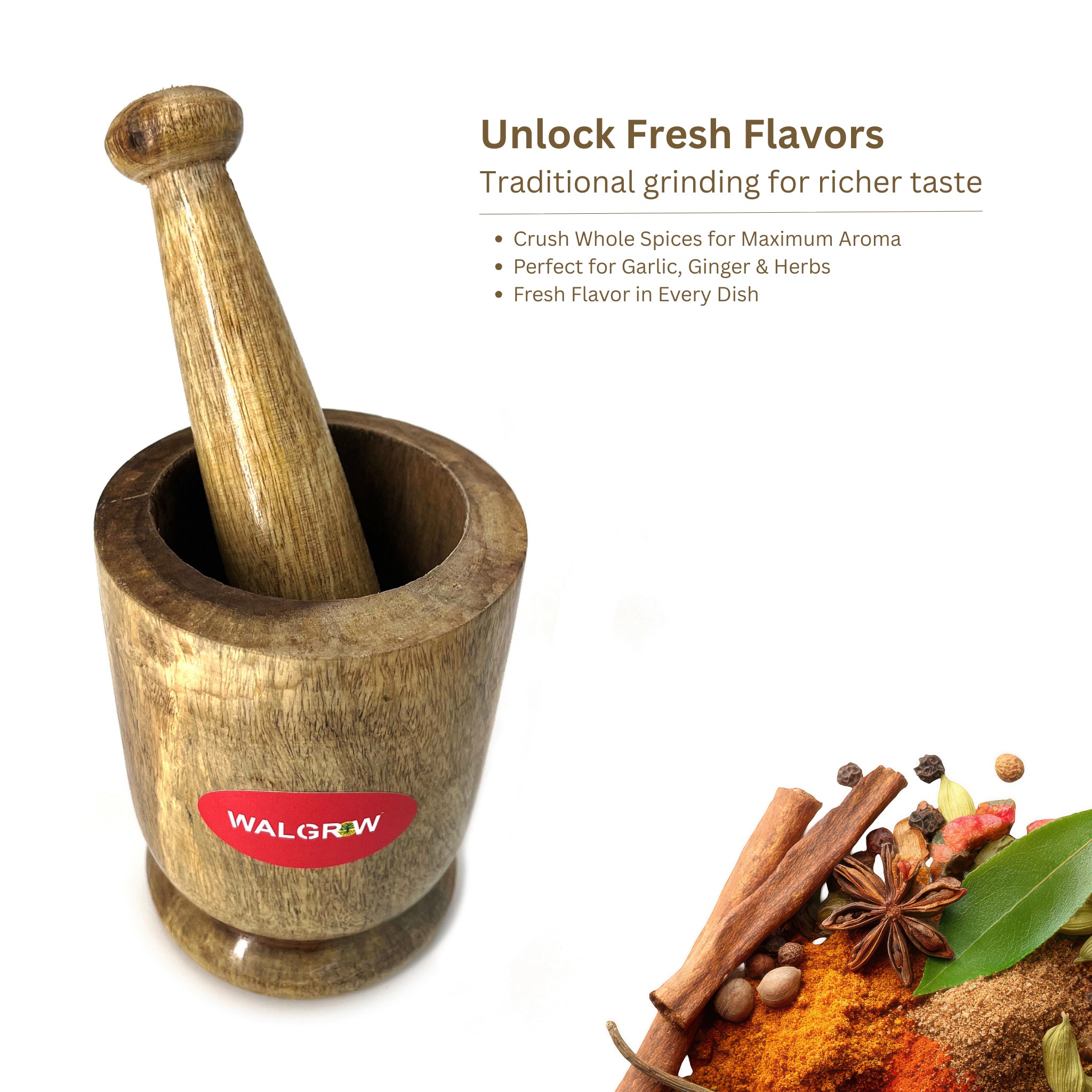 Este mortero de madera tradicional para especias es perfecto para preparar pasta de ajo, jengibre y otras especias. Este mortero y maja tienen un hermoso diseño con un acabado impecable que lo convierte en una atractiva incorporación a su colección de cocina. El acabado brillante de la zona exterior e interior le da un atractivo elegante. La textura suave y brillante garantiza un uso cómodo, por lo que es ecológico y fácil de limpiar y mantener.